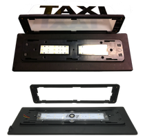 The system uses a split base plate: the lower part, which contains the LED lighting unit, is mounted on the roof and connected to power. The upper part, which holds the actual Taxi sign, simply clicks on and off the base.