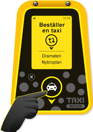 Nu kan svenska taxibolag erbjuda sina kunder bokning via en ny, innovativ taxibokningstjänst som sticker ut från mängden tack vare sin enkelhet. Taxi Butler är en enhet som placeras på platser där många taxibokningar sker, tex hotell, restauranger, barer, stationer, etc. Med ett enda klick kan kunden beställa en taxi via direktkoppling till bolagets dispatch. Kunden får sedan realtidsuppdateringar om förväntad ankomsttid, mm, på Taxi Butlerns färgskärm. Enheten behöver bara ström för att fungera, all kommunikation sker automatiskt via det inbyggda modemet.