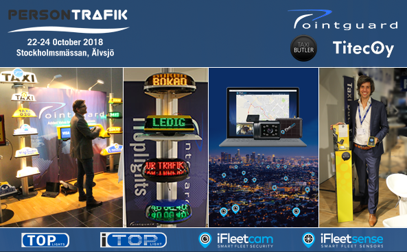 Mellan den 22-24 oktober kan du träffa Pointguard på Persontrafikmässan i Älvsjö i monter C05:41. Vi visar upp ett urval av taxilyktor och givetvis våra digitala iToplight-taxilyktor. För första gången i Sverige kan du se den nya generationens iToplight med högre upplösning och fullfärg, vilket ger möjlighet att visa grafik som logotyper och reklambudskap. Dessutom visar vi vårt nya, molnbaserade skyddskamerasystem för taxi och buss: iFleetcam.